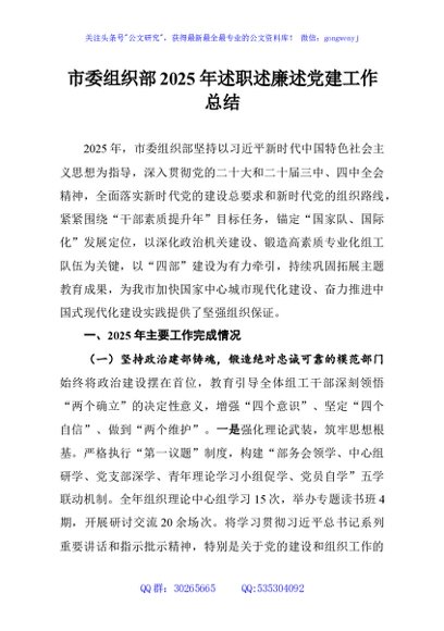 / 市委组织部2025年述职述廉述党建工作总结