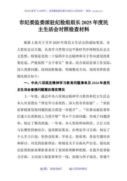 / 市纪委监委派驻纪检组组长2025年度民主生活会对照检查材料