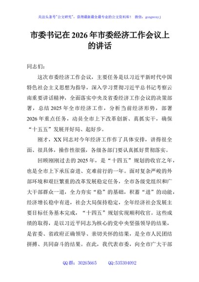 / 市委书记在2026年市委经济工作会议上的讲话
