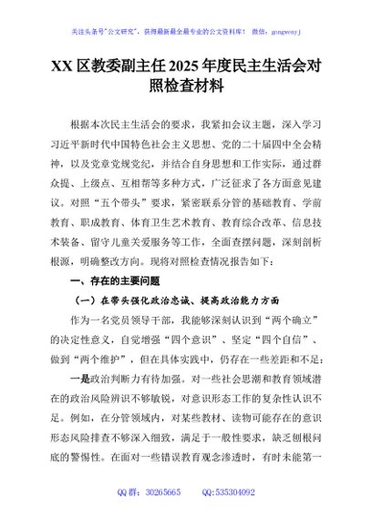 / XX区教委副主任2025年度民主生活会对照检查材料