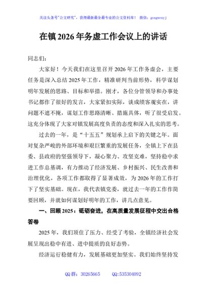 / 在镇2026年务虚工作会议上的讲话