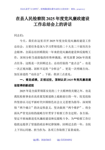 / 在县人民检察院2025年度党风廉政建设工作总结会上的讲话