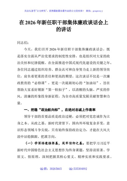 / 在2026年新任职干部集体廉政谈话会上的讲话