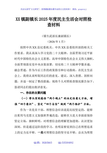 / XX镇副镇长2025年度民主生活会对照检查材料