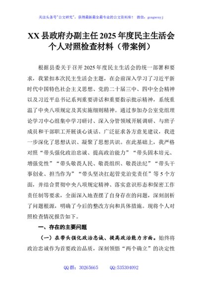 / XX县政府办副主任2025年度民主生活会个人对照检查材料(带案例)