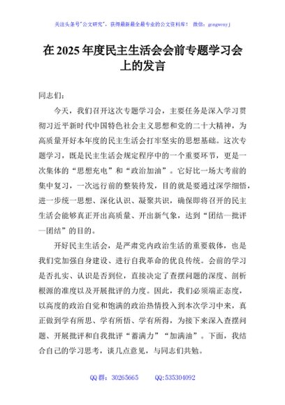 / 在2025年度民主生活会会前专题学习会上的发言
