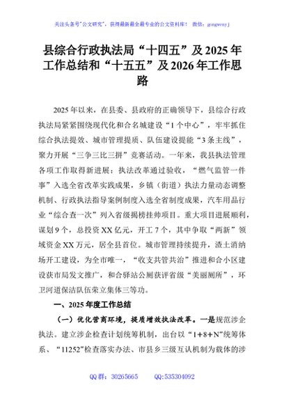 / 县综合行政执法局“十四五”及2025年工作总结和“十五五”及2026年工作思路