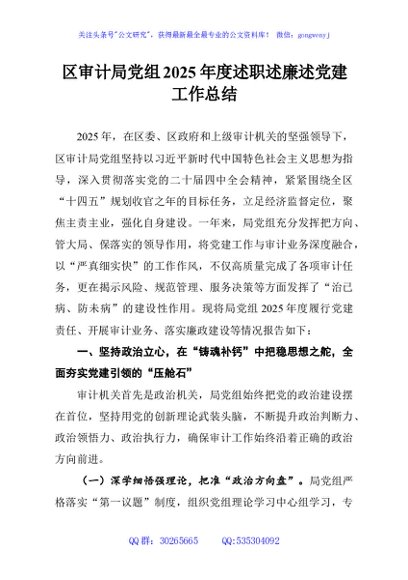 / 区审计局党组2025年度述职述廉述党建工作总结