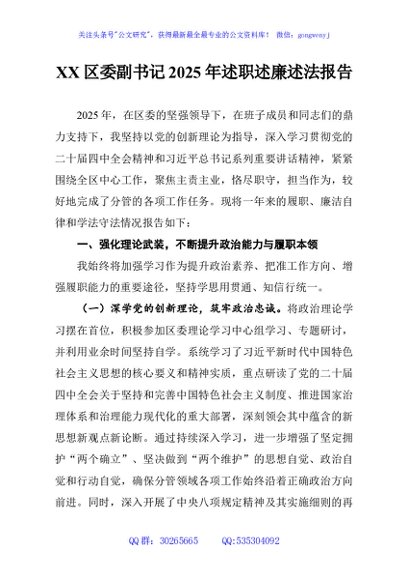 / XX区委副书记2025年述职述廉述法报告