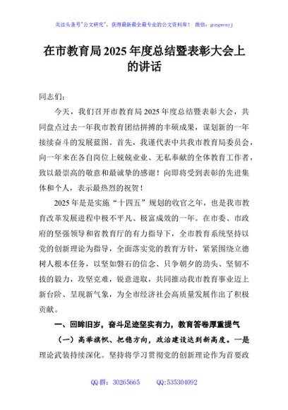 / 在市教育局2025年度总结暨表彰大会上的讲话