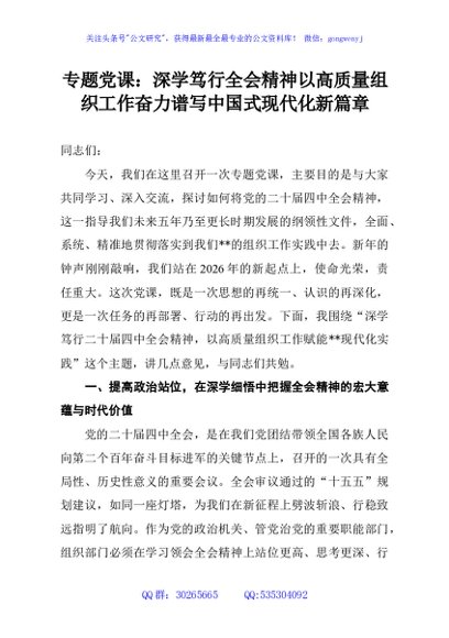 / 专题党课:深学笃行全会精神以高质量组织工作奋力谱写中国式现代化新篇章