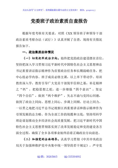 / 党委班子政治素质自査报告