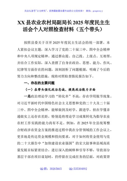 XX县农业农村局副局长2025年度民主生活会个人对照检查材料(五个带头) - 公文研究