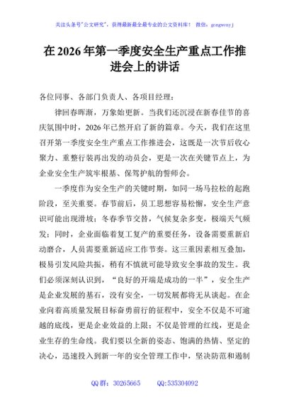 未生成预览图,长按二维码添加 在2026年第一季度安全生产重点工作推进会上的讲话 - 公文研究
