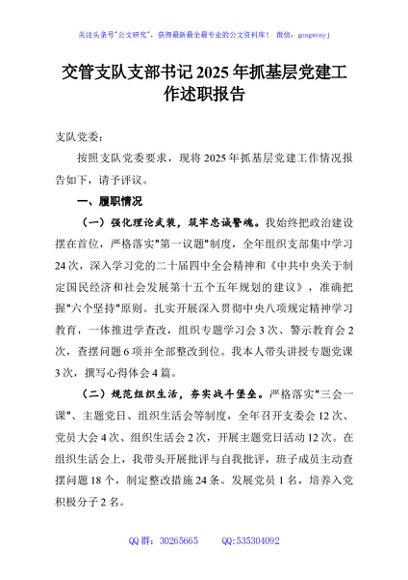 未生成预览图,长按二维码添加 交管支队支部书记2025年抓基层党建工作述职报告 - 公文研究