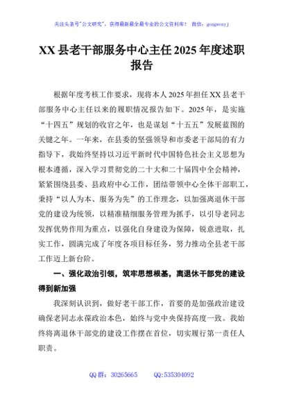 未生成预览图,长按二维码添加 XX县老干部服务中心主任2025年度述职报告 - 公文研究