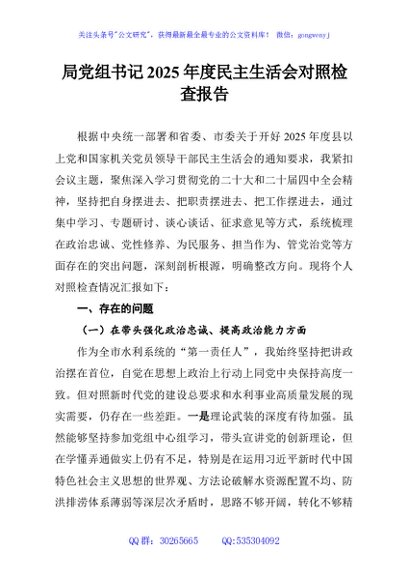 市信访局党组书记2025年度专题民主生活会对照检查发言材料(五个带头)