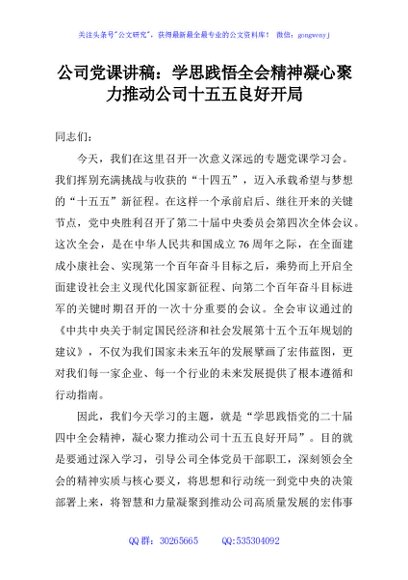 / 公司党课讲稿:学思践悟全会精神凝心聚力推动公司十五五良好开局