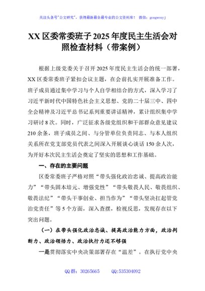 / XX区委常委班子2025年度民主生活会对照检查材料(带案例)