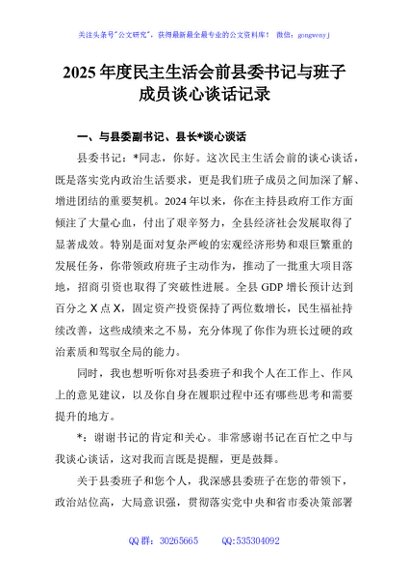 / 2025年度民主生活会前县委书记与班子成员谈心谈话记录