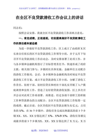 / 在全区不良贷款清收工作会议上的讲话