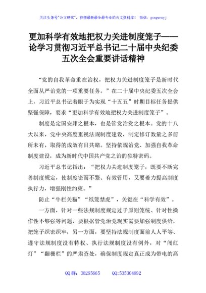 / 更加科学有效地把权力关进制度笼子——论学习贯彻习近平总书记二十届中央纪委五次全会重要讲话精神