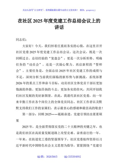 / 在社区2025年度党建工作总结会议上的讲话