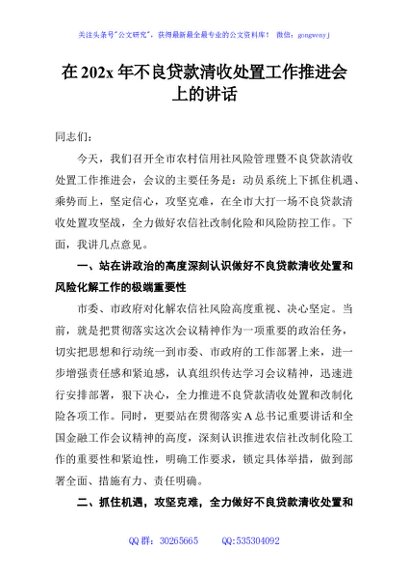 / 在202x年不良贷款清收处置工作推进会上的讲话