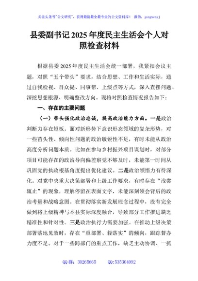 / 县委副书记2025年度民主生活会个人对照检查材料