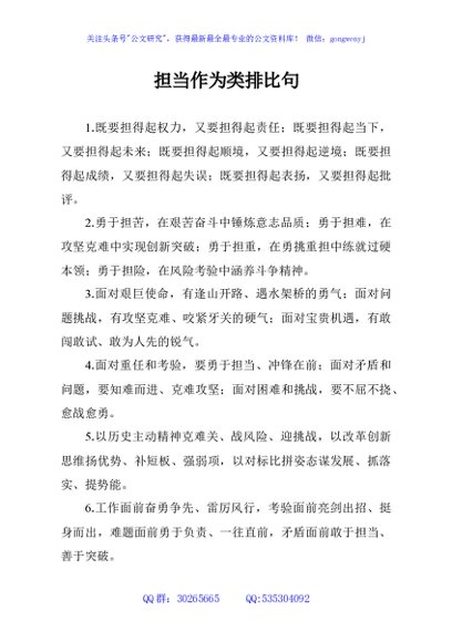 担当作为类排比句