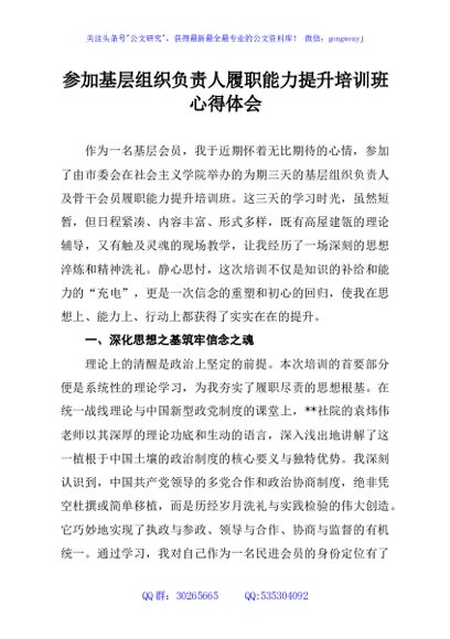 参加基层组织负责人履职能力提升培训班心得体会
