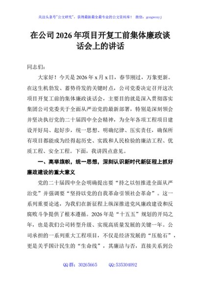 / 在公司2026年项目开复工前集体廉政谈话会上的讲话