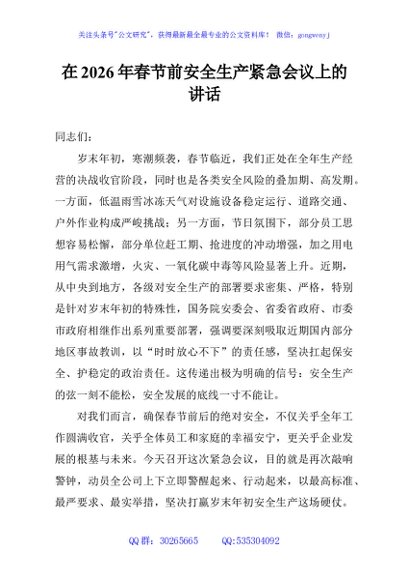 / 在2026年春节前安全生产紧急会议上的讲话