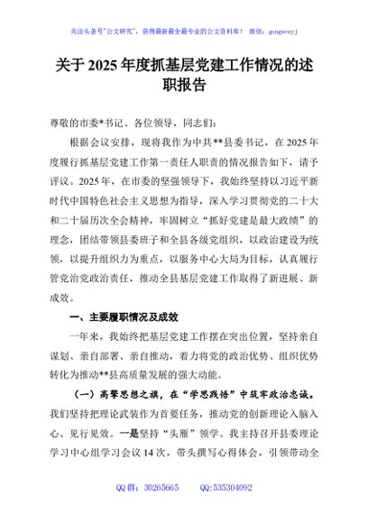 / 关于2025年度抓基层党建工作情况的述职报告