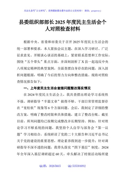 / 县委组织部部长2025年度民主生活会个人对照检查材料