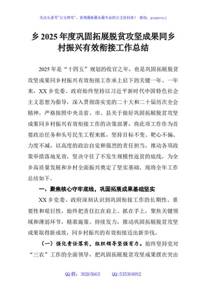 / 乡2025年度巩固拓展脱贫攻坚成果同乡村振兴有效衔接工作总结