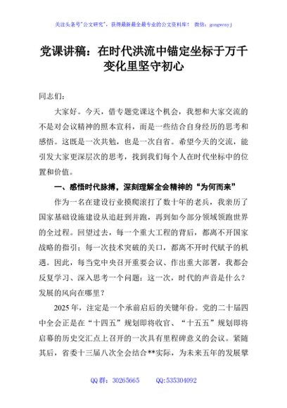 / 党课讲稿:在时代洪流中锚定坐标于万千变化里坚守初心