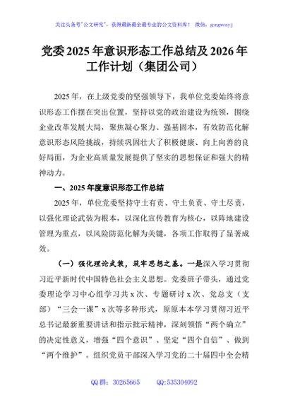 / 党委2025年意识形态工作总结及2026年工作计划(集团公司)