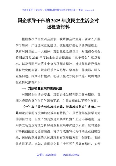 / 国企领导干部的2025年度民主生活会对照检查材料