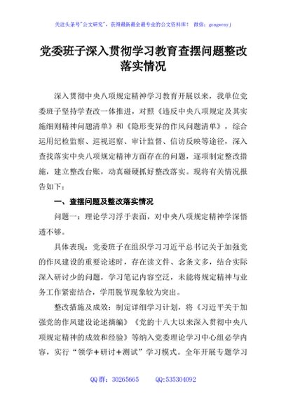 未生成预览图,长按二维码添加 党委班子深入贯彻学习教育查摆问题整改落实情况 - 公文研究