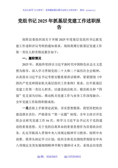 未生成预览图,长按二维码添加 党组书记2025年抓基层党建工作述职报告 - 公文研究