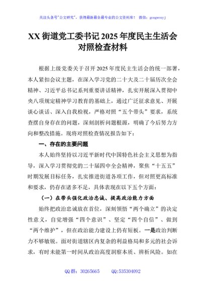 未生成预览图,长按二维码添加 XX街道党工委书记2025年度民主生活会对照检查材料 - 公文研究