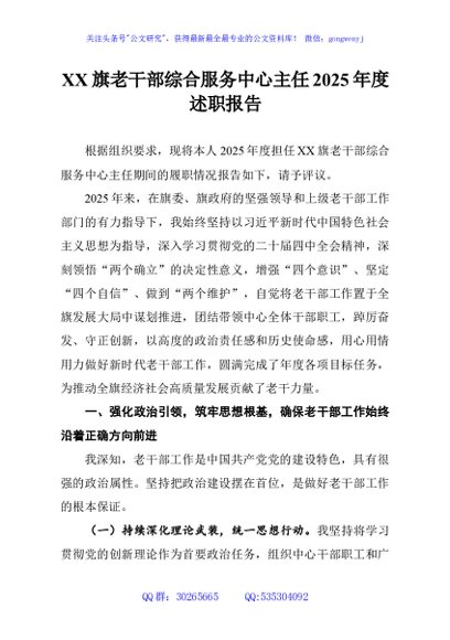 / XX旗老干部综合服务中心主任2025年度述职报告