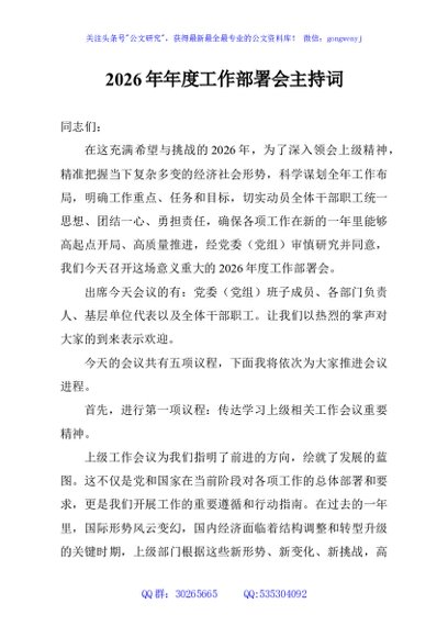 2026年年度工作部署会主持词