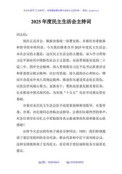 / 2025年度民主生活会主持词