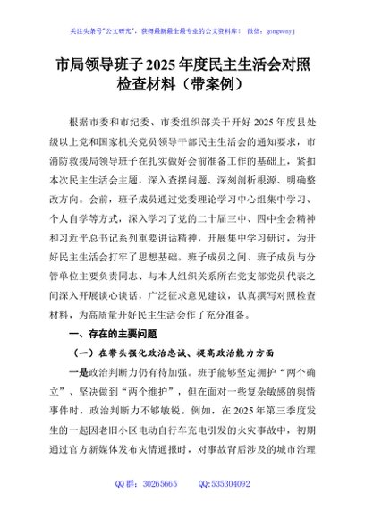 / 市局领导班子2025年度民主生活会对照检查材料(带案例)