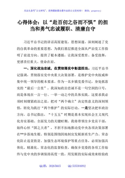 / 心得体会:以“赴百仞之谷而不惧”的担当和勇气忠诚履职、清廉自守