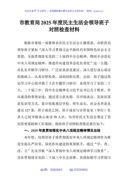 / 市教育局2025年度民主生活会领导班子对照检查材料