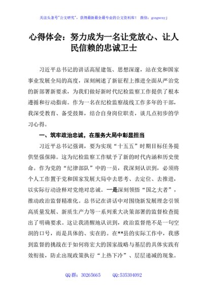 / 心得体会:努力成为一名让党放心、让人民信赖的忠诚卫士
