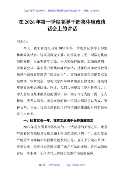 / 在2026年第一季度领导干部集体廉政谈话会上的讲话